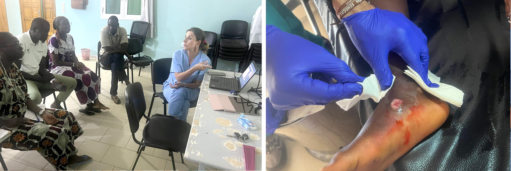 Se impartieron talleres sobre enfermedades de transmisión sexual —centrados en su diagnóstico, tratamiento y prevención—, así como sobre las patologías dermatológicas más frecuentes en Senegal, las infecciones respiratorias, el tratamiento de heridas, los cuidados perinatales y la nutrición infantil dirigida a mujeres senegalesas.